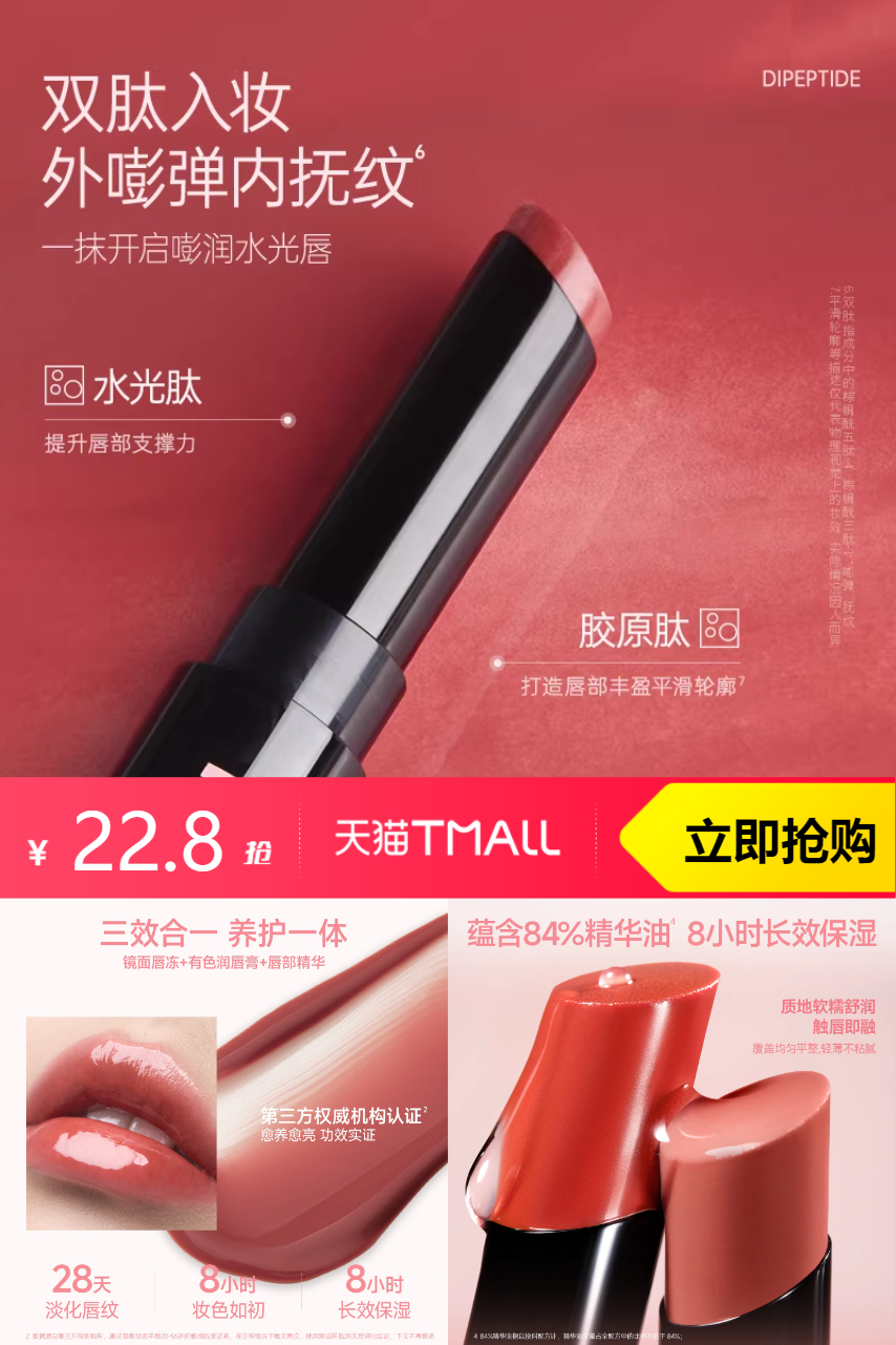 ⭕任选2支!木柯诗双肽水光唇冻镜面口红