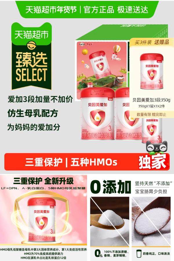 【拍3件加赠350g*2罐】国产大牌奶粉品质值得信赖!母乳配方,添加5种母乳低聚糖、活性蛋白、乳铁蛋白!溶解快,宝宝吸收好,不上火,全方位守护宝宝的,睡眠、营养、骨骼健康!