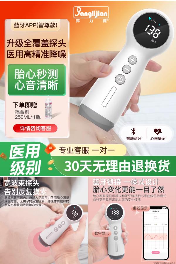 精准监测!邦力健胎心监护仪采用无辐射多普勒技术,安全可靠,准妈妈在家也能轻松听胎心、录胎音~89.13元超值入手!免去医院排队,随时掌握宝宝心跳节律,孕期安心更省心!守护胎心的每一秒,现在就能开始~