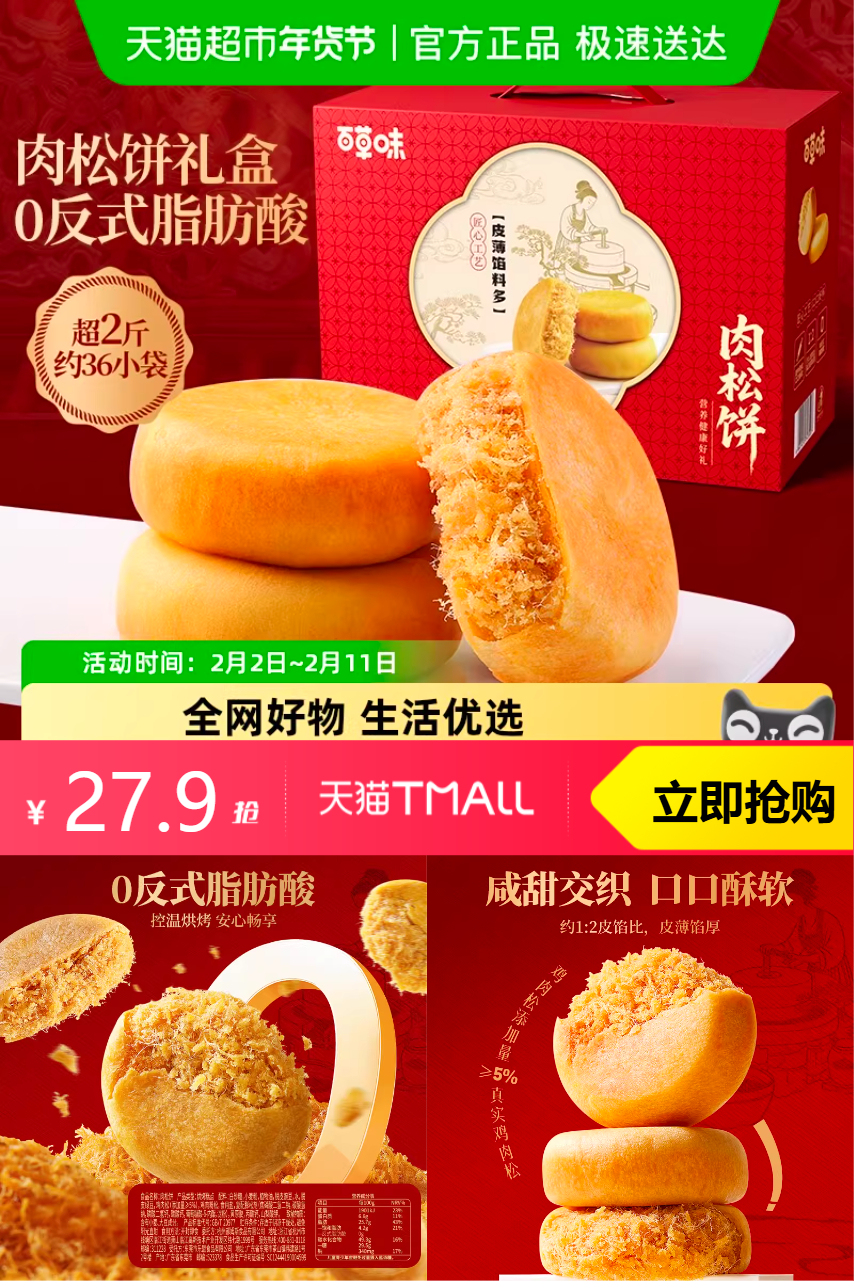 推荐:百草味肉松饼年货礼盒1200g