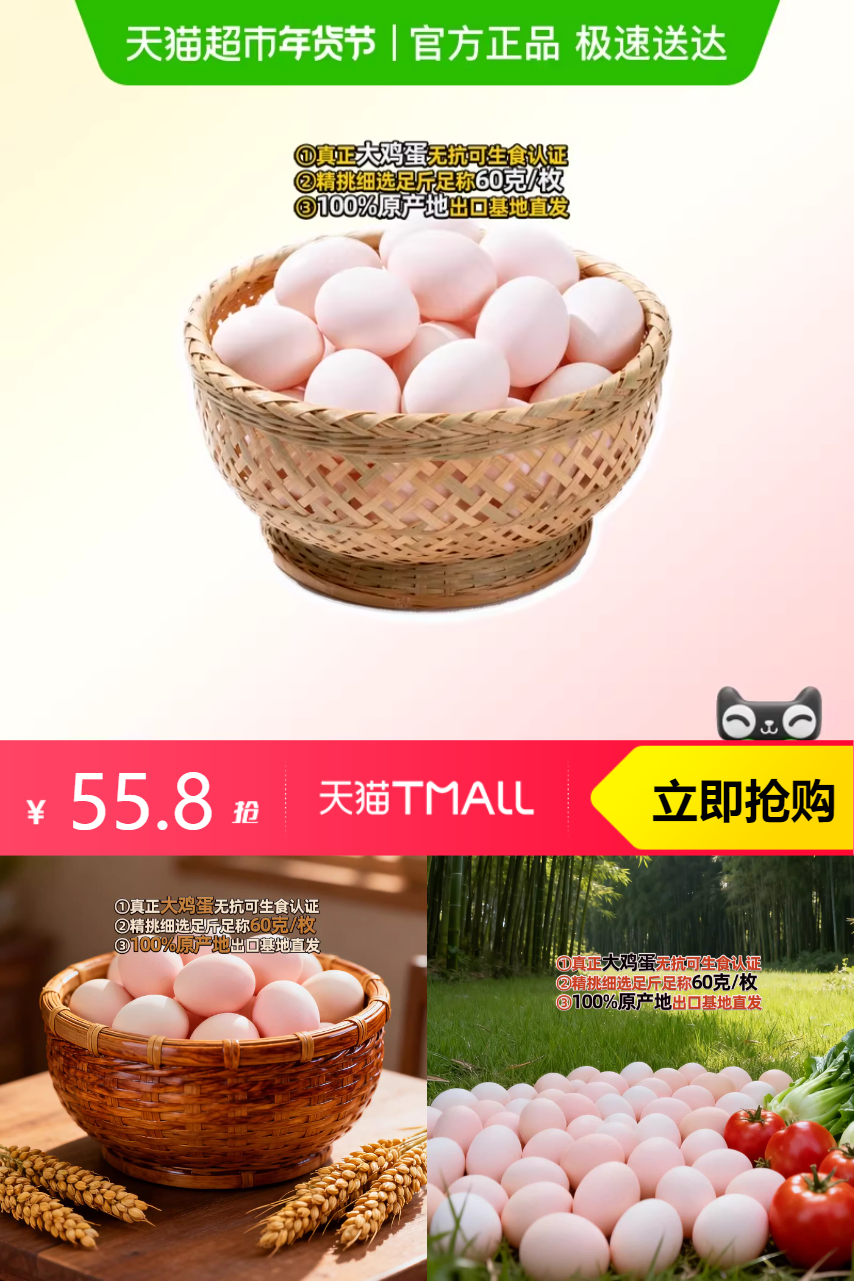 推荐:年货60克大鸡蛋50枚可生食无抗认证