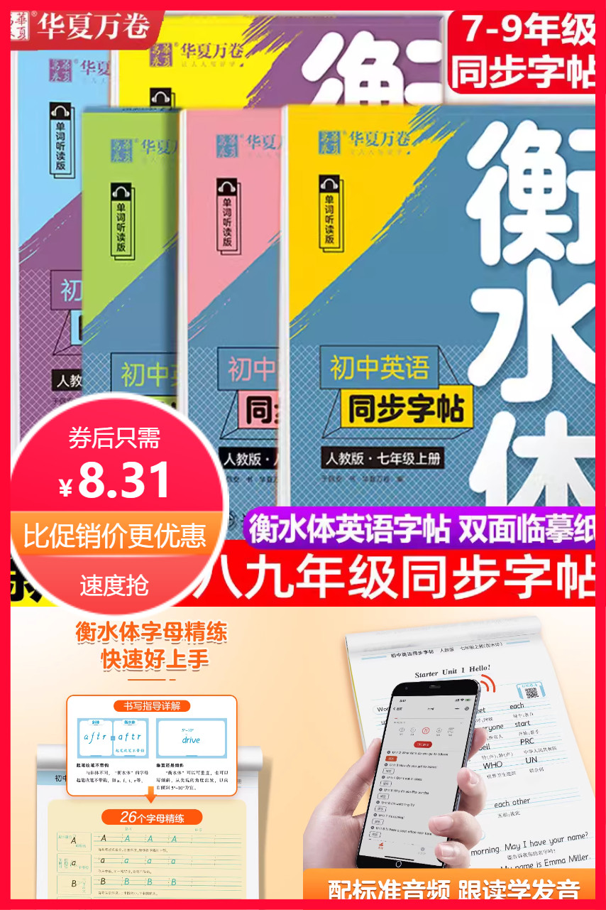 初中+同步+人教版RJ!!针对性强,助力英语学习!丰富产品线,覆盖多元需求!朗读功能加持,用户体验升级!!关键是字帖全系列,一网打尽!!