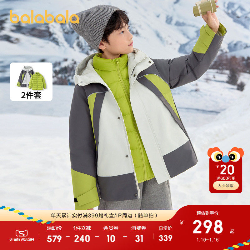 ⭕巴拉巴拉羽绒服男防护撞色两件套