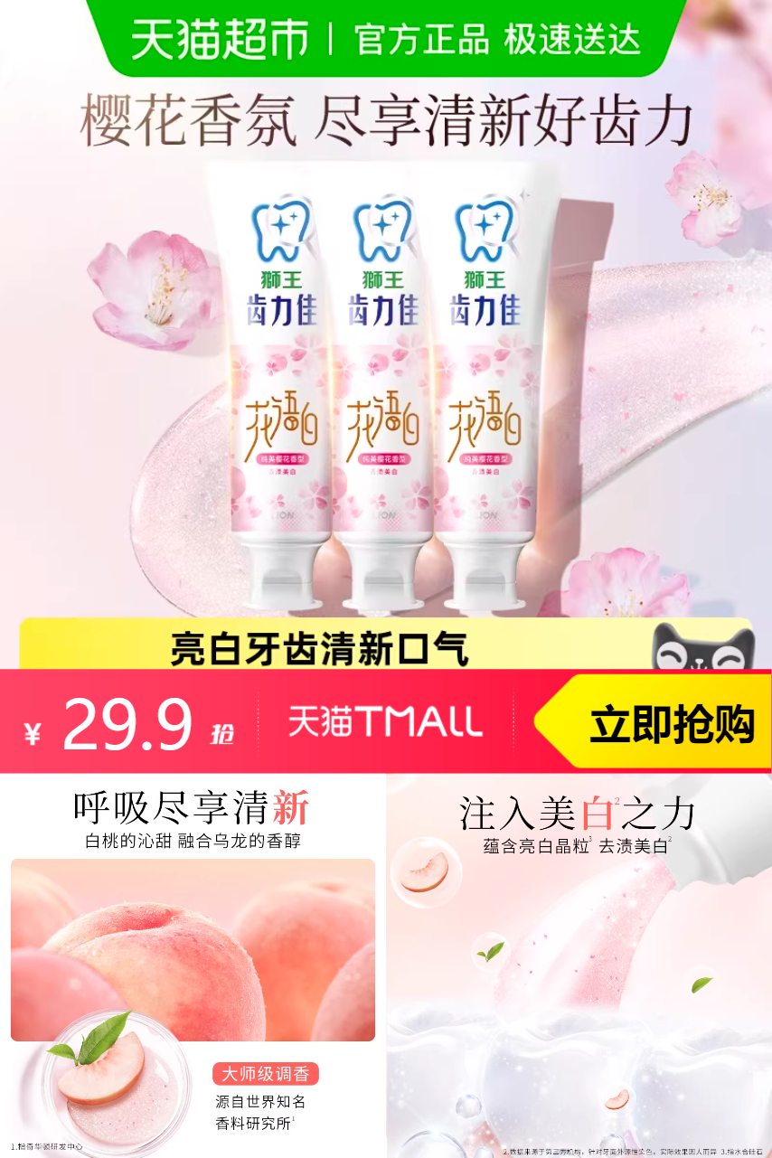 推荐:狮王齿力佳花语白离子亮白牙膏140g×3