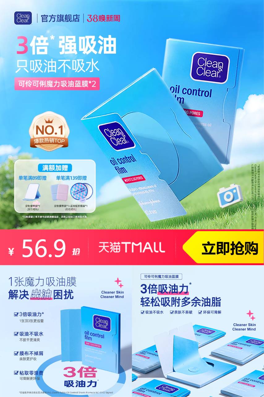 【96.5-立减11.6-券28-淘金币8.32=48.58元】油光拜拜!可伶可俐来助阵!蓝膜4包,轻松告别油面!高效吸油,清透肌肤,你我值得拥有!