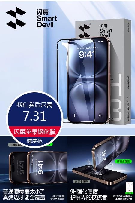 闪魔 【金币补贴】闪魔苹果钢化膜2片+神器 19元减4.56 商品纠错