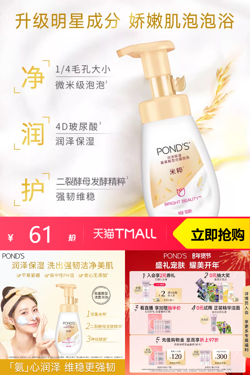 【1、yjpz到29.01%2、叠加淘金币2.35元+凑单消费券200-25=到手仅需51.31元。合计单支25.65元,随机弹限时红包到手更低会员加赠随机补水面膜2片】旁氏氨基酸洁面泡泡160ml*2,微米级泡泡,深层净毛孔,肌肤维稳锁水状态!