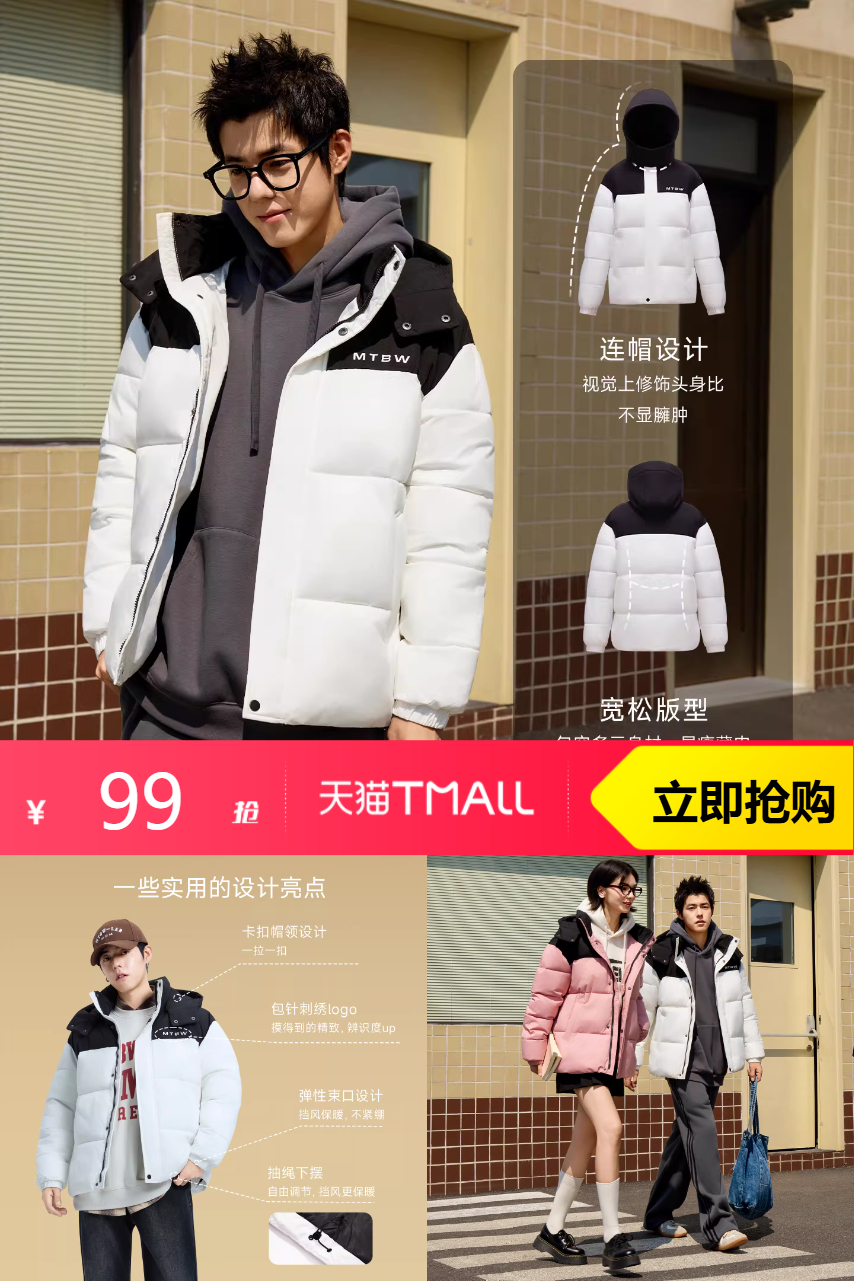 【有10%礼金抵扣9.9元,叠加淘金币9.95元,凑消费券到手69元左右】美特斯邦威棉服潮流休闲拼色保暖连帽棉衣男,剪裁贴身舒适,无论是在户外活动还是日常穿着,都能让你感到自在与舒适。
