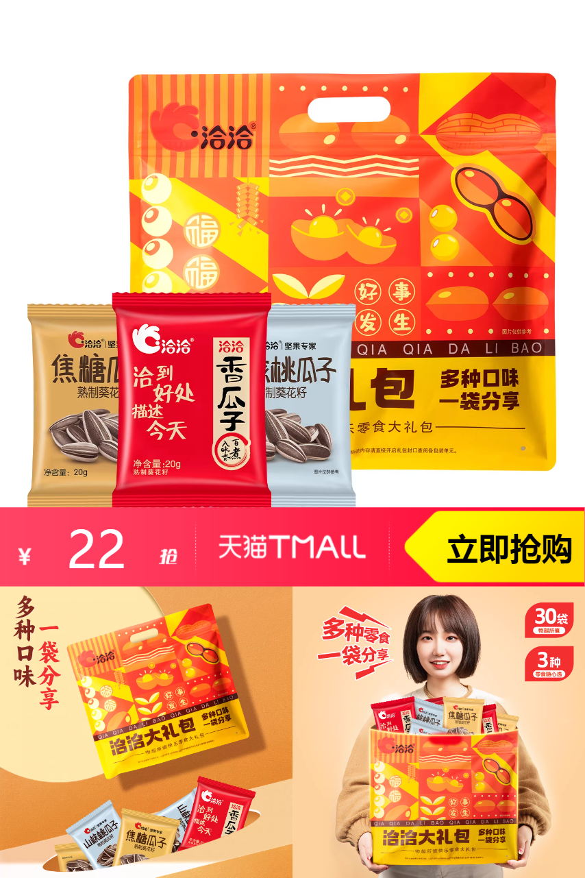 【下拉疯抢跳转秒杀到手26.31-88立减1.32-天降礼金2.3=22..69,凑消费劵到手19.9】开袋即食,600g瓜子大礼包,每一颗都饱满香脆,独立小包,方便携带。