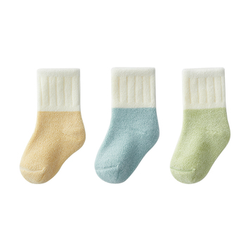 十月结晶粒粒阳光儿童袜子,宝宝新生亲肤秋冬中筒袜加厚保暖婴儿袜3双