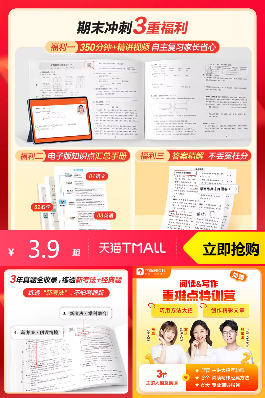 【叠加天降红包2元到手1.9元】学而思25期末冲刺下册100分,专为临近期末的同学设计,省时高效,无需加班熬夜。