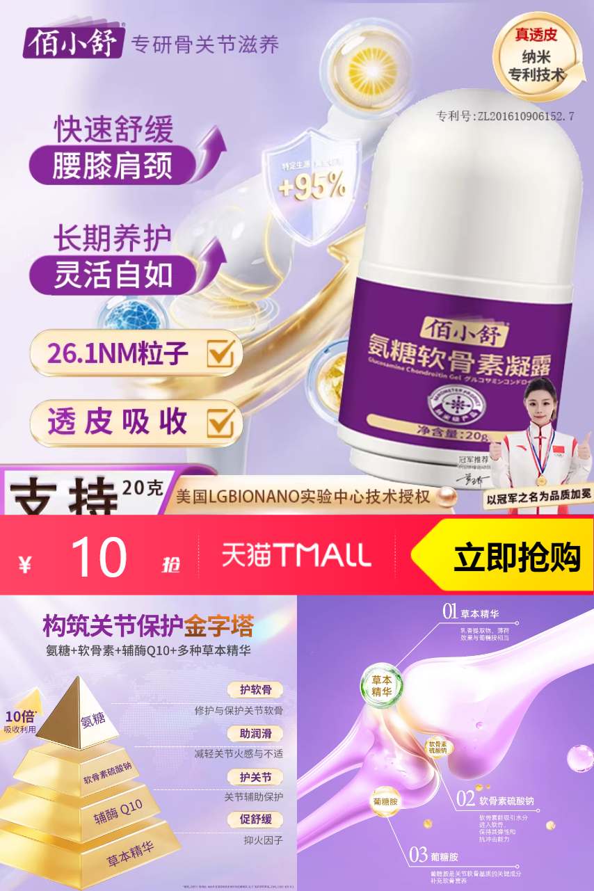 关节疼痛不用愁,软骨修复新选择,氨糖软骨素效果强!专为关节设计,痛感一扫而光!纯天然外用配方,安全有效更放心!