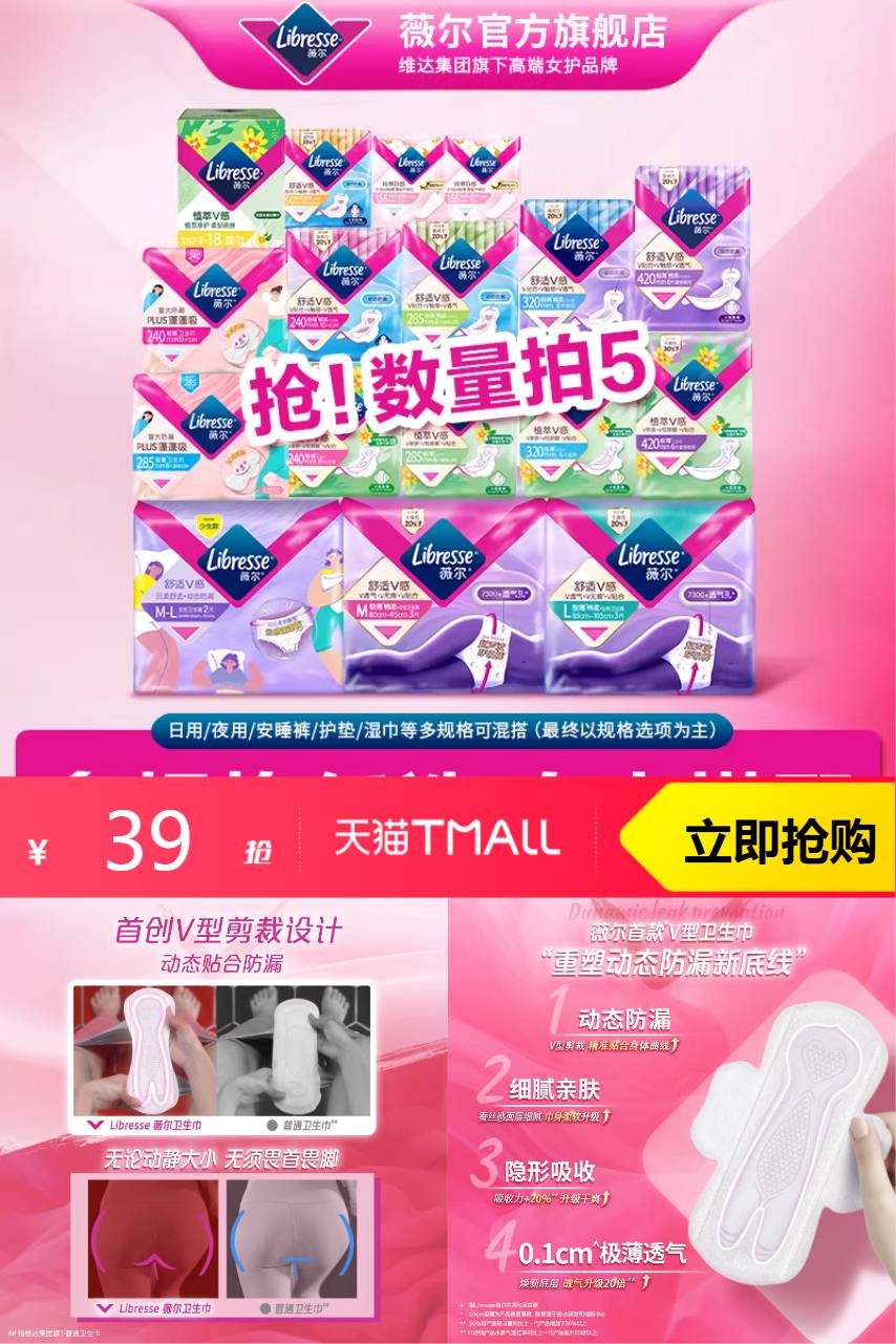 【任选5件,300=券225-立减36-淘金币3.8=35.2元,凑200-25消费券到手31元。后26%】薇尔产品采用了超强吸收技术,确保长时间保持干爽。再也不用担心不舒适和侧漏的问题了。