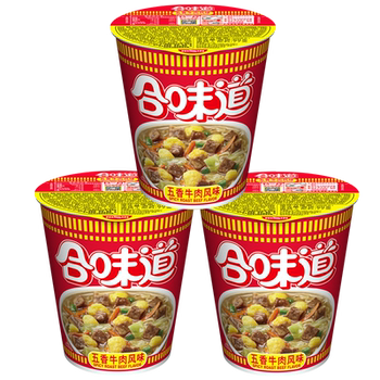 推荐:NISSIN/日清方便面合味道五香牛肉风味代餐零食夜宵泡面77g×3杯