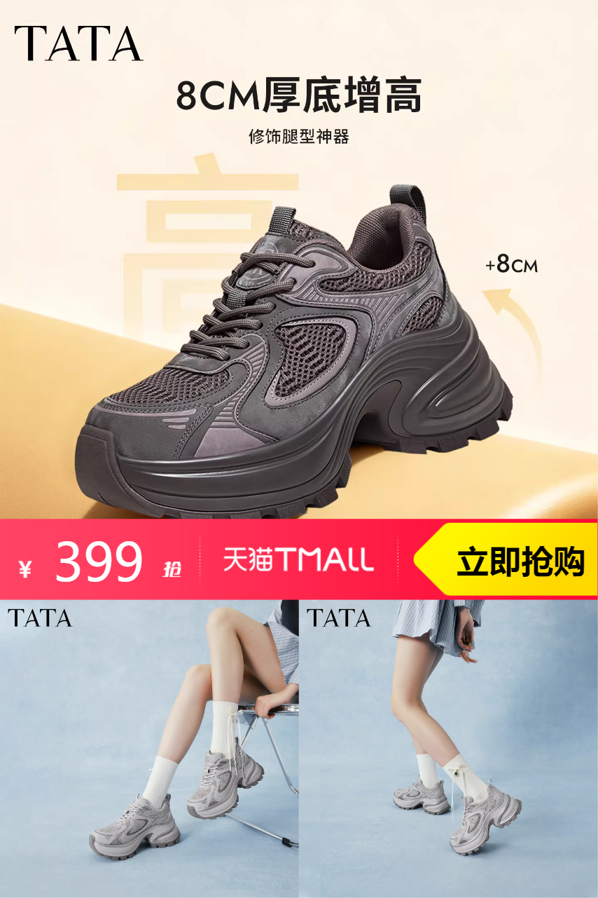 他她 TATA他她女鞋休闲运动鞋增高加绒老爹鞋 669元减270 商品纠错