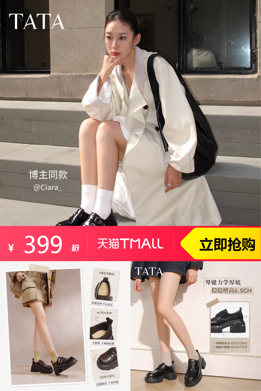 他她 他她钢琴家乐福鞋女厚底英伦风小皮鞋 609元减210 商品纠错