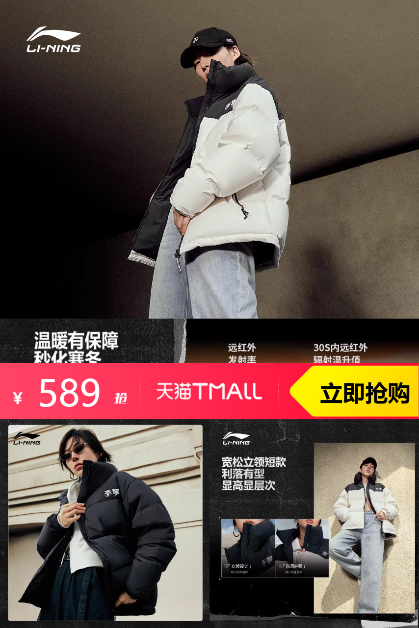 【叠400消费券到手418,购物金预计到手390;】李宁火锅羽绒服丨官方短款,内锁温,外防护,有温度也有风度。