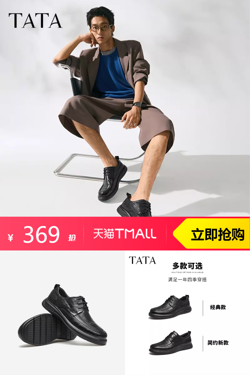 【叠加淘金币15元,凑380-45消费券,到手312元左右】TATA他她商务休闲男士皮鞋黑色真皮软底,不仅带给您如影随形的舒适体验,更是那份精致生活的不二之选。