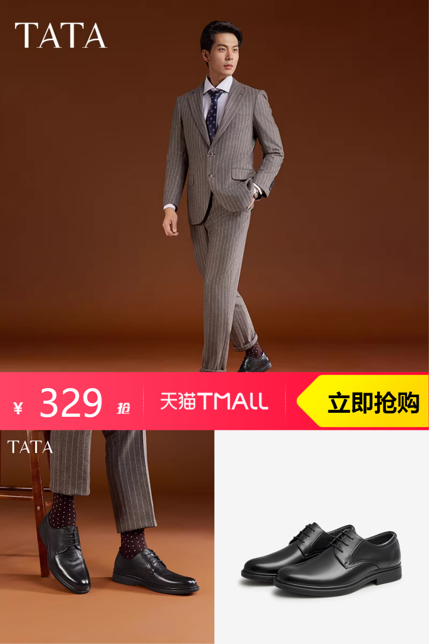 【叠加淘金币15元,凑380-45消费券,到手276元左右】Tata他她男士皮鞋真皮黑色德比鞋新款,时尚男鞋,商务正装必备!