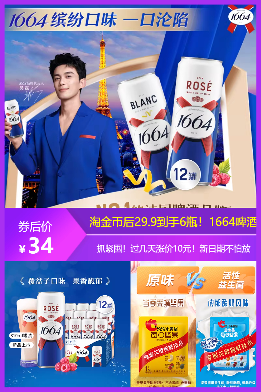 ⭕淘金币后29.9到手6瓶!1664啤酒