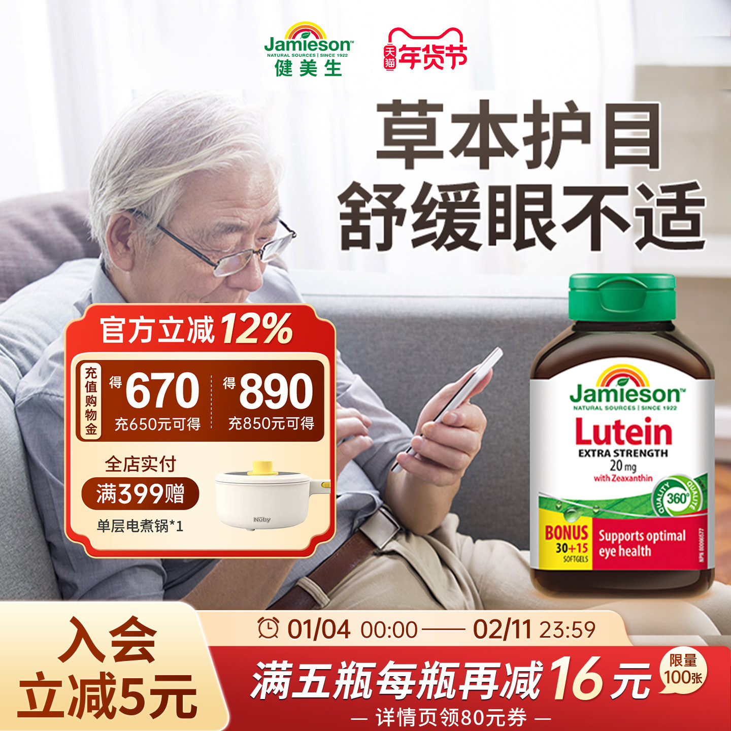 【全球热销】 Jamieson/健美生进口叶黄素护眼片,高品质原料,安全有效保护视力,适合中老年人群。每粒含25mg叶黄素,每日一片,轻松养护眼睛。同时富含多种维生素和矿物质,补充身体所需营养,让您的生活更加健康美好。现在购买更有机会获得赠品,赶快行动吧!