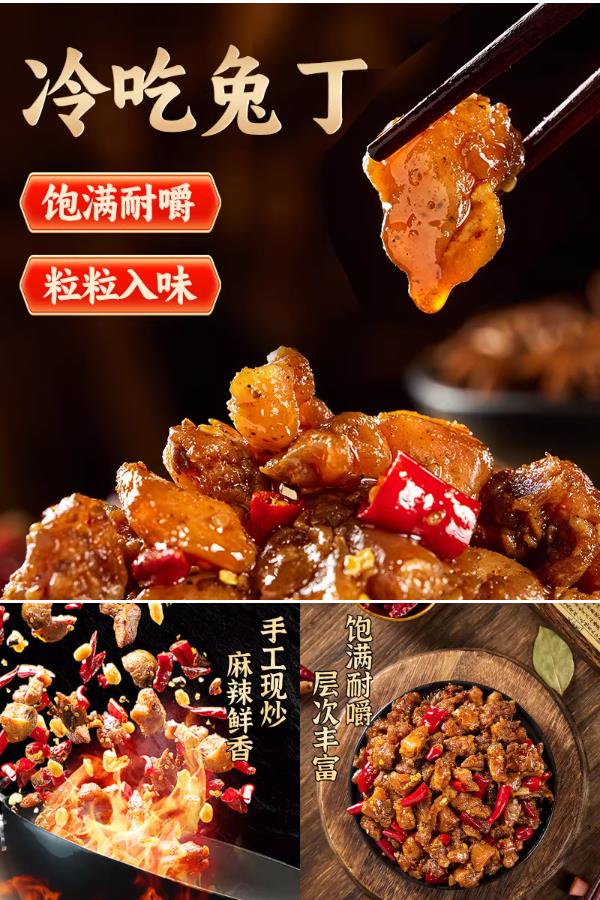 自贡非遗冷吃兔工艺,精选兔腿肉丁,麻辣鲜香酥脆不腻,地道川味一口上瘾!9.9元到手200g!四川特产即食零食,开袋即食免烹饪,追剧解馋超满足~解锁舌尖上的川味江湖,现在就尝鲜!