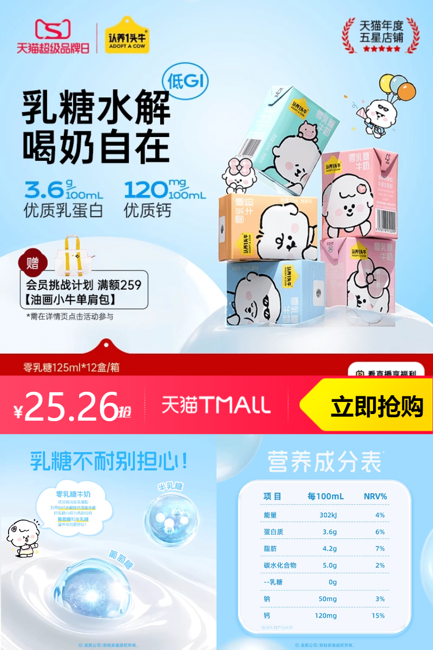 【联名款,淘金币抵扣4.64,到手25.26元】认养一头牛0乳糖儿童奶,0乳糖,营养亲和好吸收!