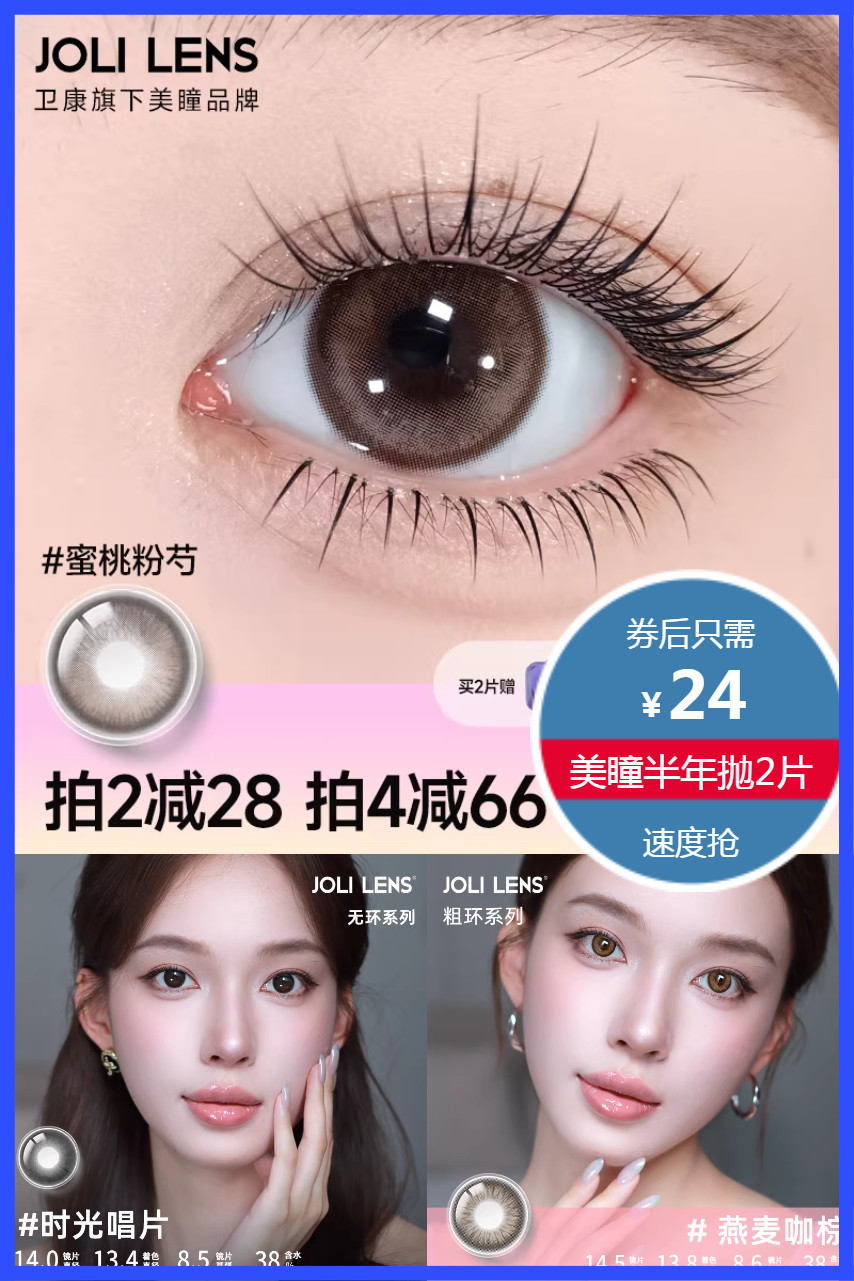 买2片送镜盒!首单2元+立减5.8元+淘金币叠加劵到手19.11元!拍2件卫康美瞳隐形眼镜半年抛2片,多度数多花色可选,融瞳自然不突兀,眼神自带聚焦感,不挑妆容,花色自然,含水量38%不干涩,适合日常及多种场景!