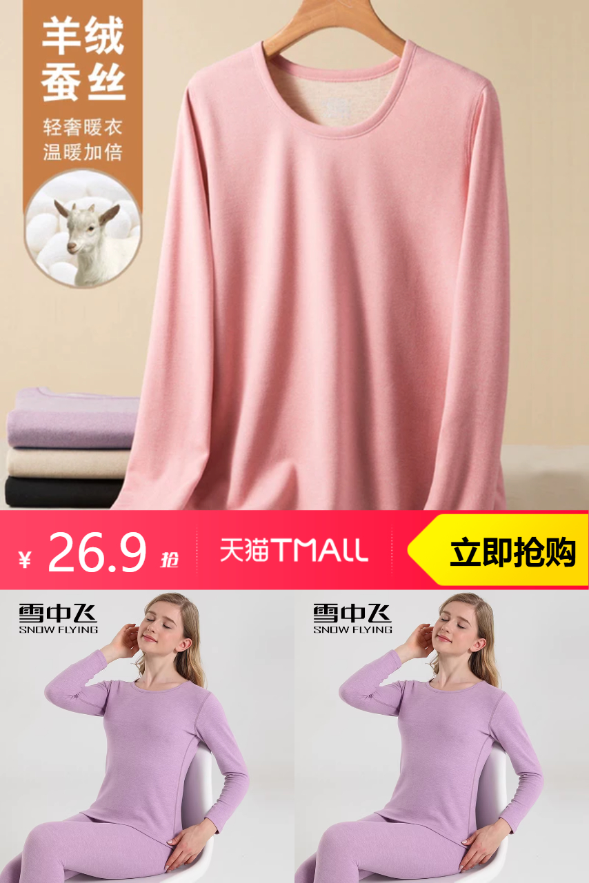 ⭕雪中飞五代女款保暖套装秋冬羊绒蚕丝