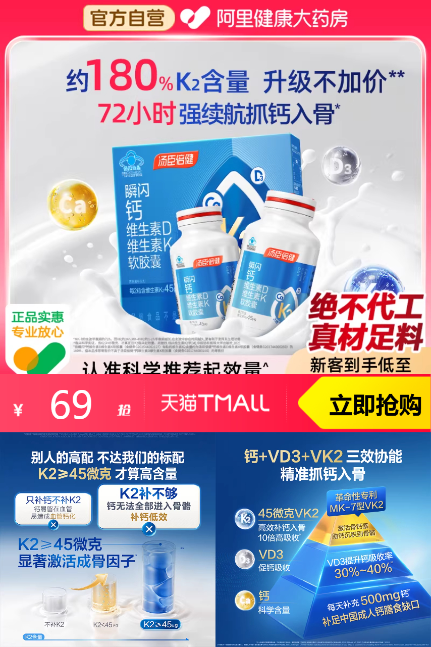 【叠加88vip抵扣3.45元+淘金币10.03元+凑单200-25消费券=到手仅需48.58元。合计单粒0.53元】汤臣倍健金标液体钙90粒,补充钙质,增强骨密度,金标液体钙助你轻松吸收。