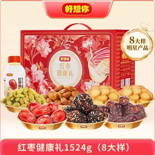 超市89一箱啊!还有一个月过年!好礼枣到家! 好想你官旗•红枣健康礼礼盒1524g 下拉!进百亿29.9亓 免洗红枣、黑芝麻丸、阿胶蜜枣、黄芪水等... 8大样明星单品,健康有营养真是送谁都合适