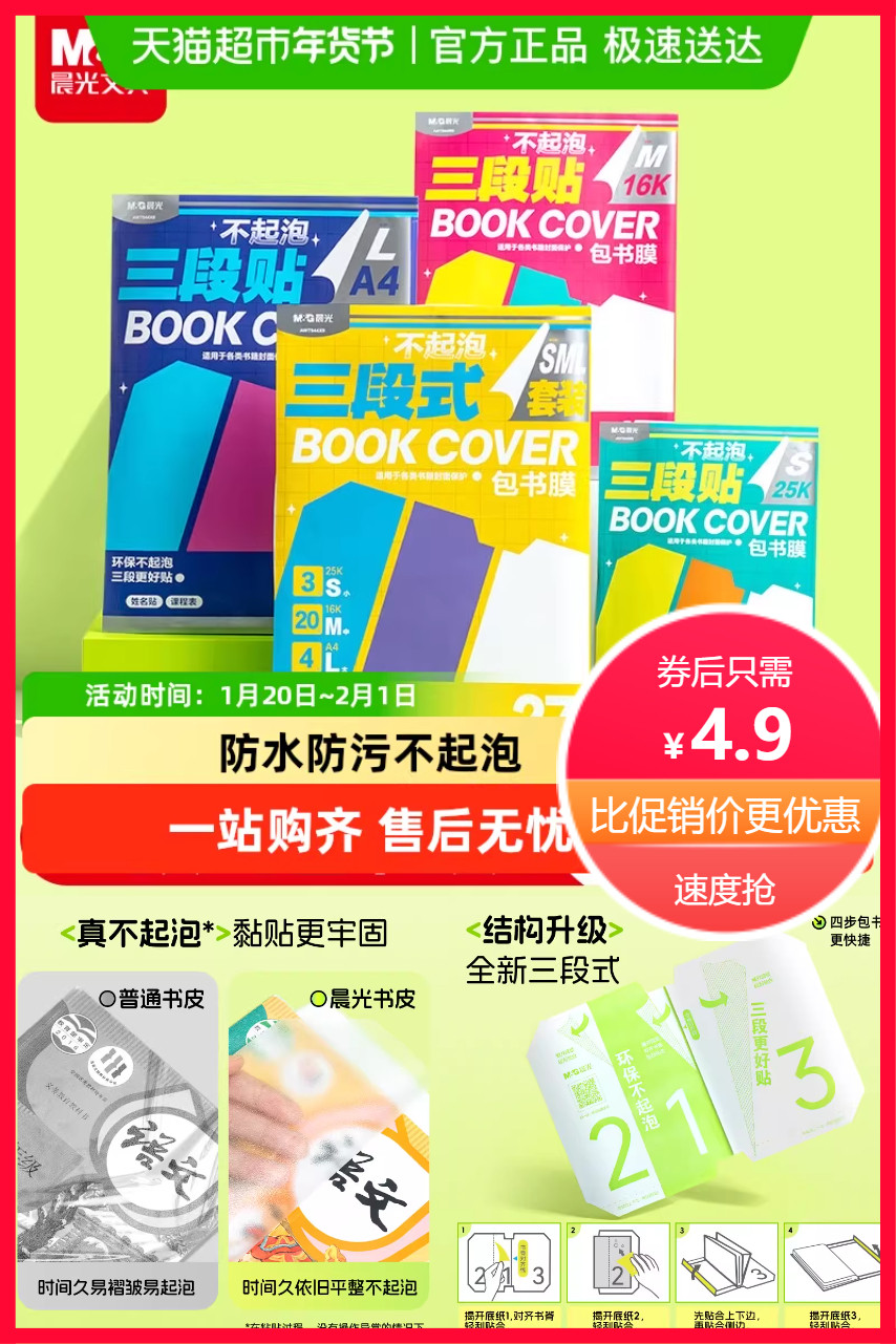 推荐:晨光自粘升级分三段式磨砂加厚防水书皮