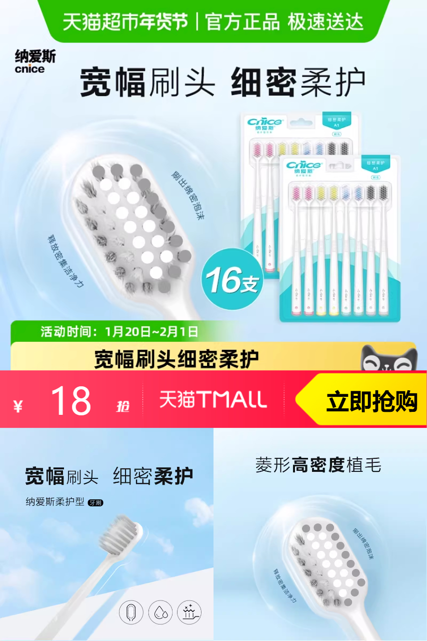 【下拉淘金币抵扣3.69,88vip减0.9元,到手13.41元。】【下拉享金币】纳爱斯柔护型牙刷八支装*2,纳爱斯柔护型牙刷,你值得拥有!它采用超柔软的刷毛,保护你的牙齿和口腔,让你的笑容更加自信、更加美丽。