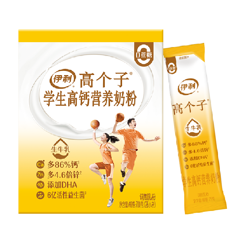 【营养早餐】伊利大学生青少年高个子成长高锌高钙奶粉,富含高钙,营养,适合学生的成长需求。口感香醇,易于消化吸收,为你的孩子提供健康营养。