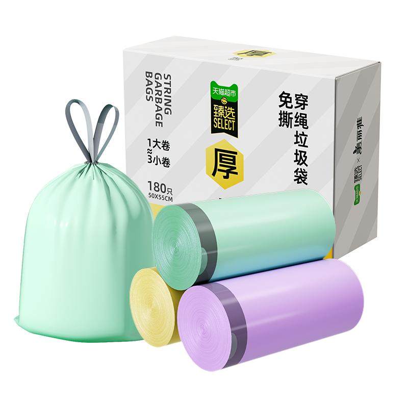 【天猫超市】美丽雅高品质垃圾袋,环保材料设计,耐用不易破损。适合家庭、厨房使用,方便清理垃圾。马卡龙色系搭配,美观大方。无需手动撕开,轻松开启,省时省力。环保健康生活新选择。