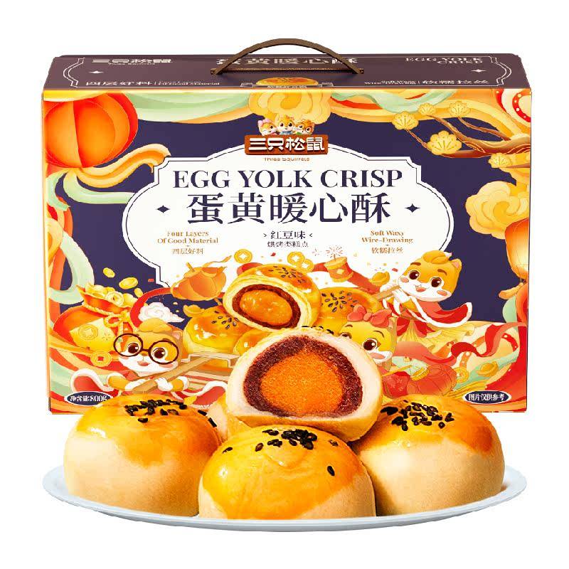 推荐:三只松鼠蛋黄酥肉松饼整箱糕点心零食营养早餐小吃年货过年送礼盒