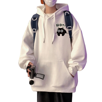 ⭕潮流宽松卡通小猫印花连帽卫衣