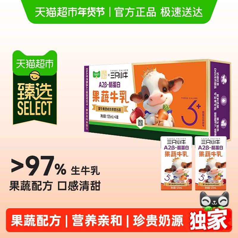 推荐:【臻选】下拉页领取优惠蒙牛三只小牛A2酪蛋白儿童牛奶4盒