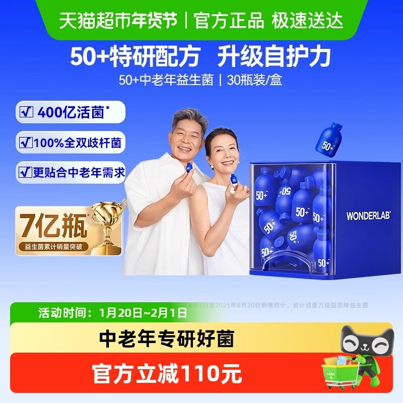 【万益蓝WonderLab成人50岁+中老年肠胃消化益生菌】为您的健康保驾护航,让您的身体更加健康、活力满满!赠送给您亲爱的家人,让他们也能享受到这份关爱与呵护。