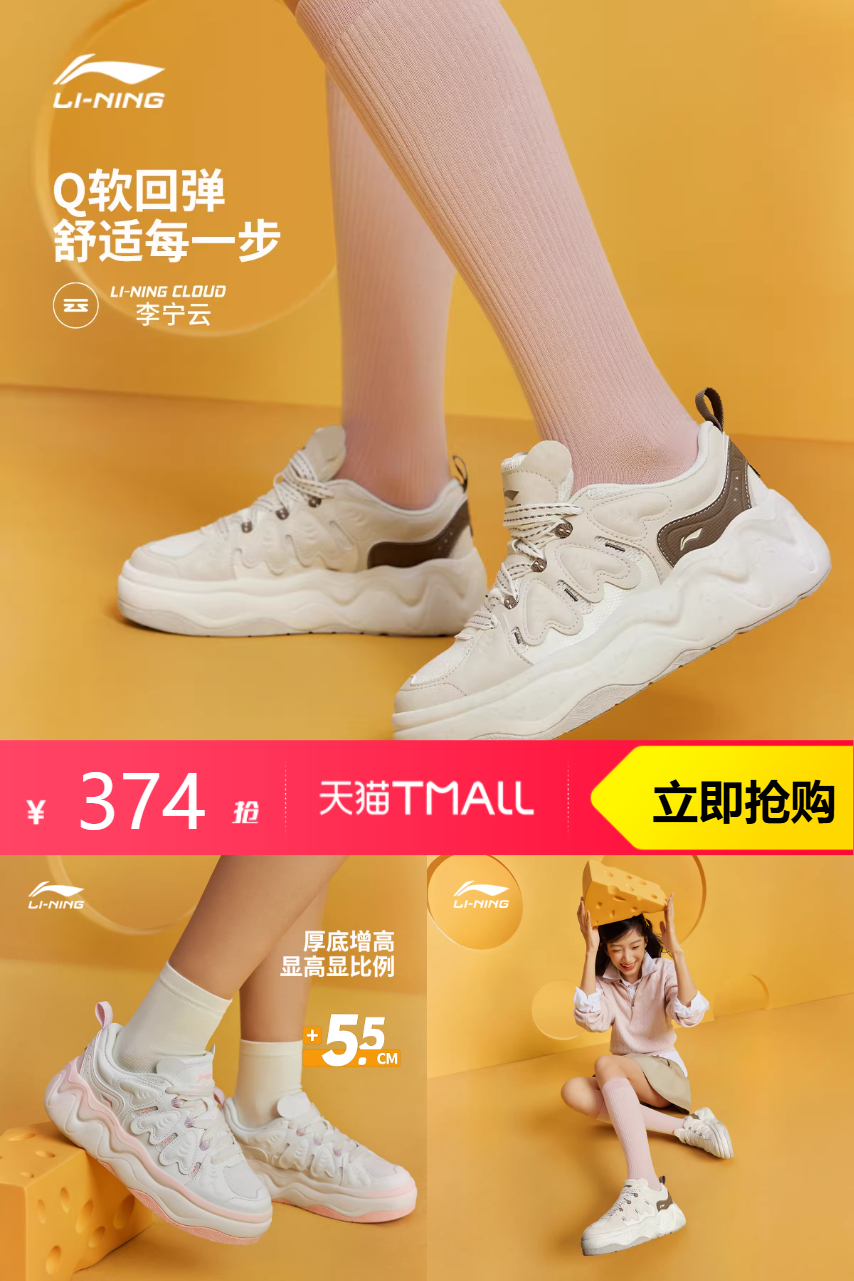 ⭕李宁奶酪3丨休闲鞋女春季厚底增高红色新款