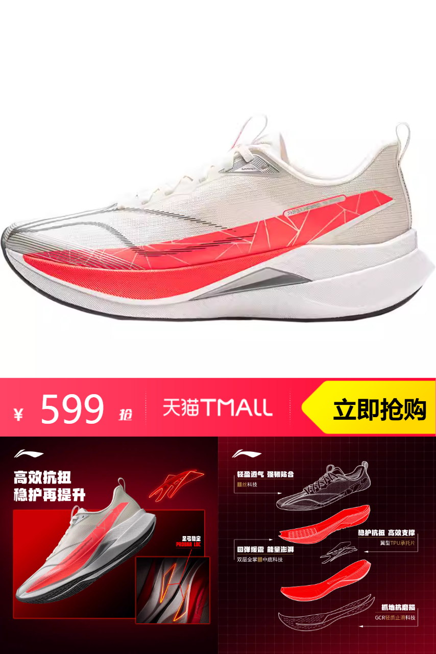 【可叠消费券满480减60,满599减100,后到手仅需438左右】李宁赤兔9PRO | 跑步鞋男中考体测,鞋底采用优质材料,提供强大缓震效果,保护脚部不受冲击。