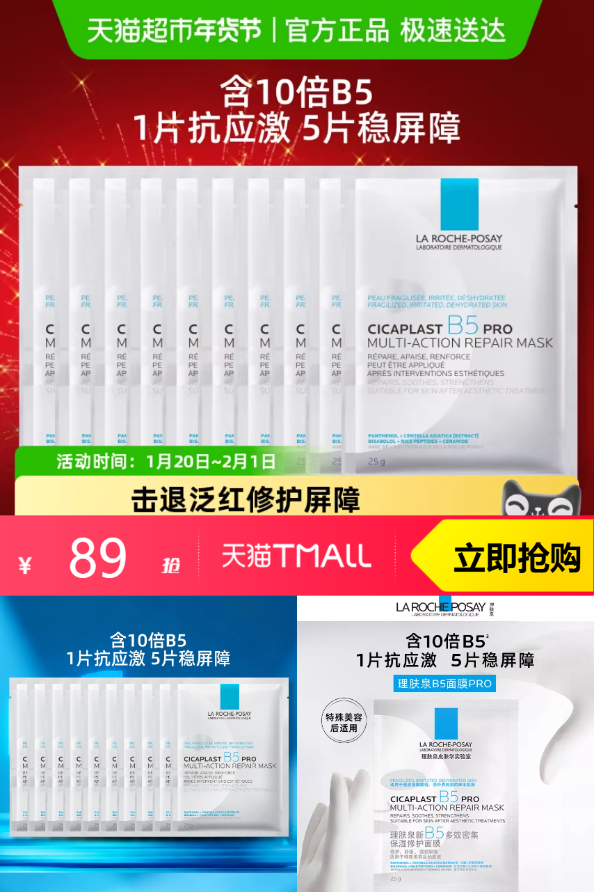 推荐:【7元/片】理肤泉B5面膜PRO10片装