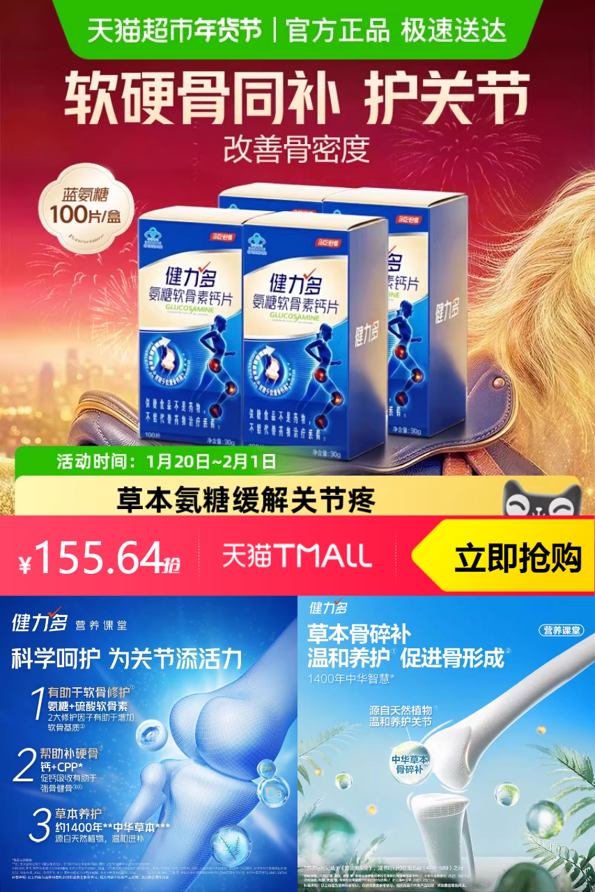 【叠加金币15.96,88vip 抵扣11.40,消费券抵扣 25】健力多蓝氨糖,关节健康守护神,高效修复软骨,运动无负担,增强骨骼韧性,不再疼痛困扰,优质补钙好选择,生活活力满载。