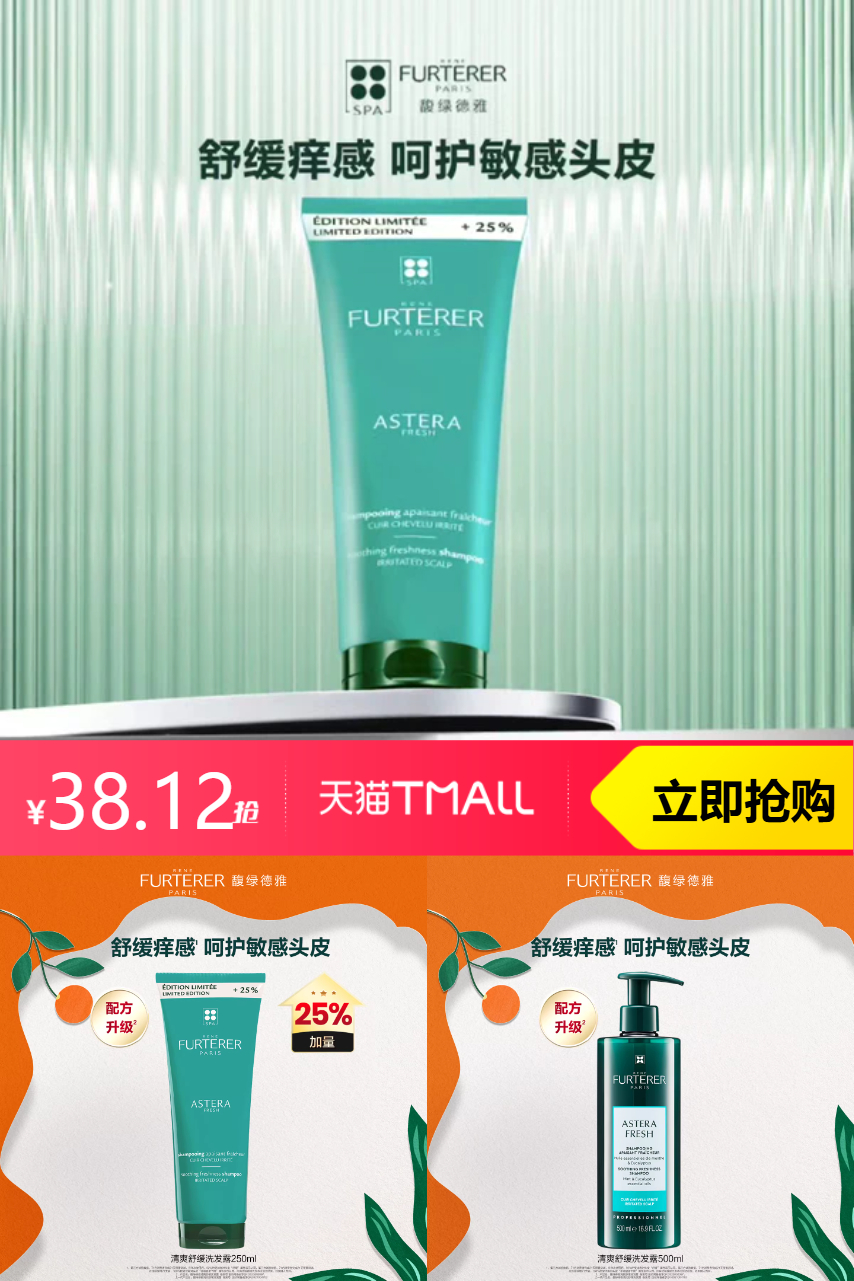 【加会员减5,官方立减49,专享立减3,国际满300减20抵7.85,淘金币抵9.84,限时红包9,满200减25抵6.19到手价38.12】馥绿德雅清爽舒缓洗发水250ml,品质优选~