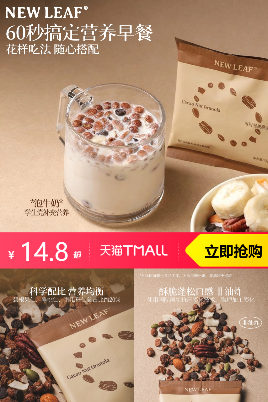 Newleaf可可坚果燕麦片250g/包 43元减5.2 商品纠错
