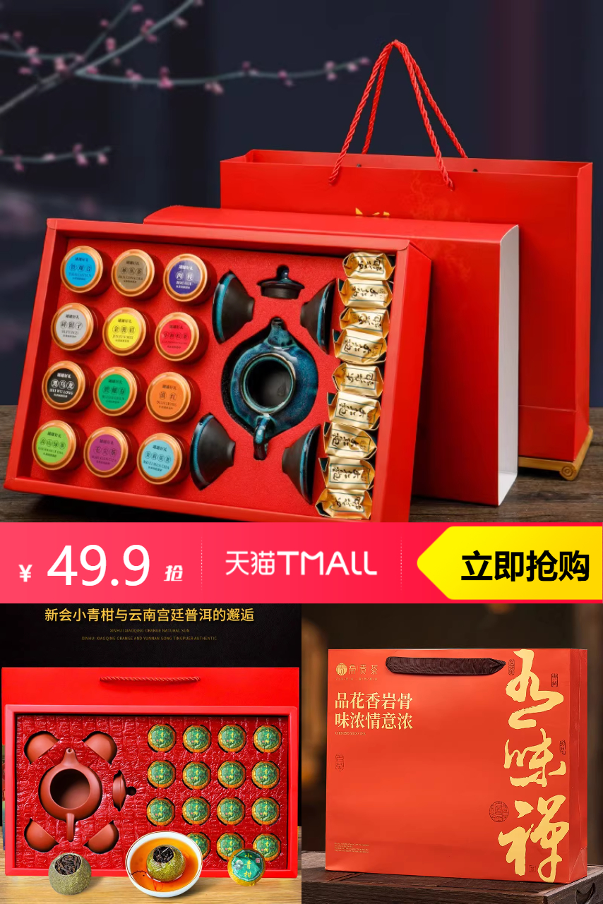 ⭕港猫茶叶礼盒装小罐茶小青柑16粒送茶具