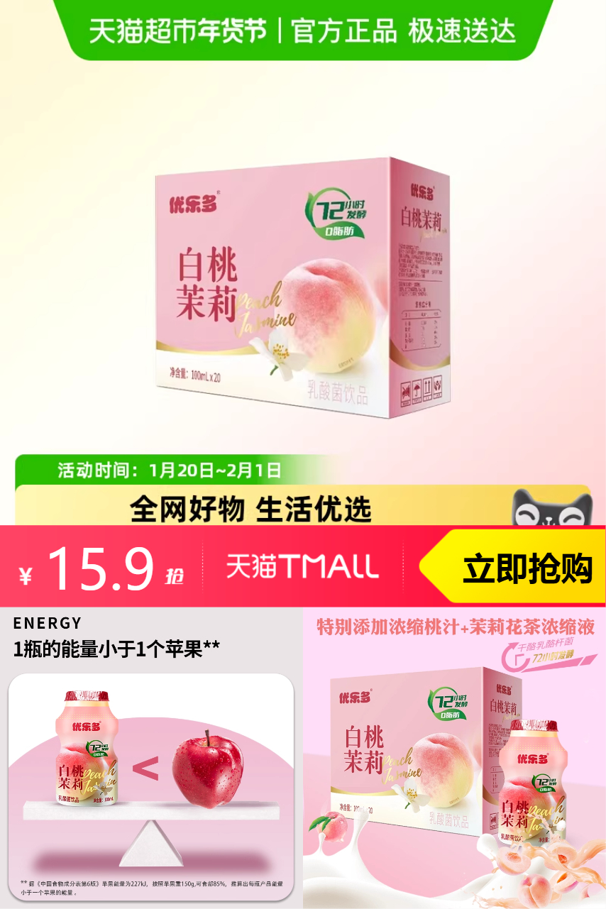 推荐:优乐多乳酸菌白桃味100ml*20