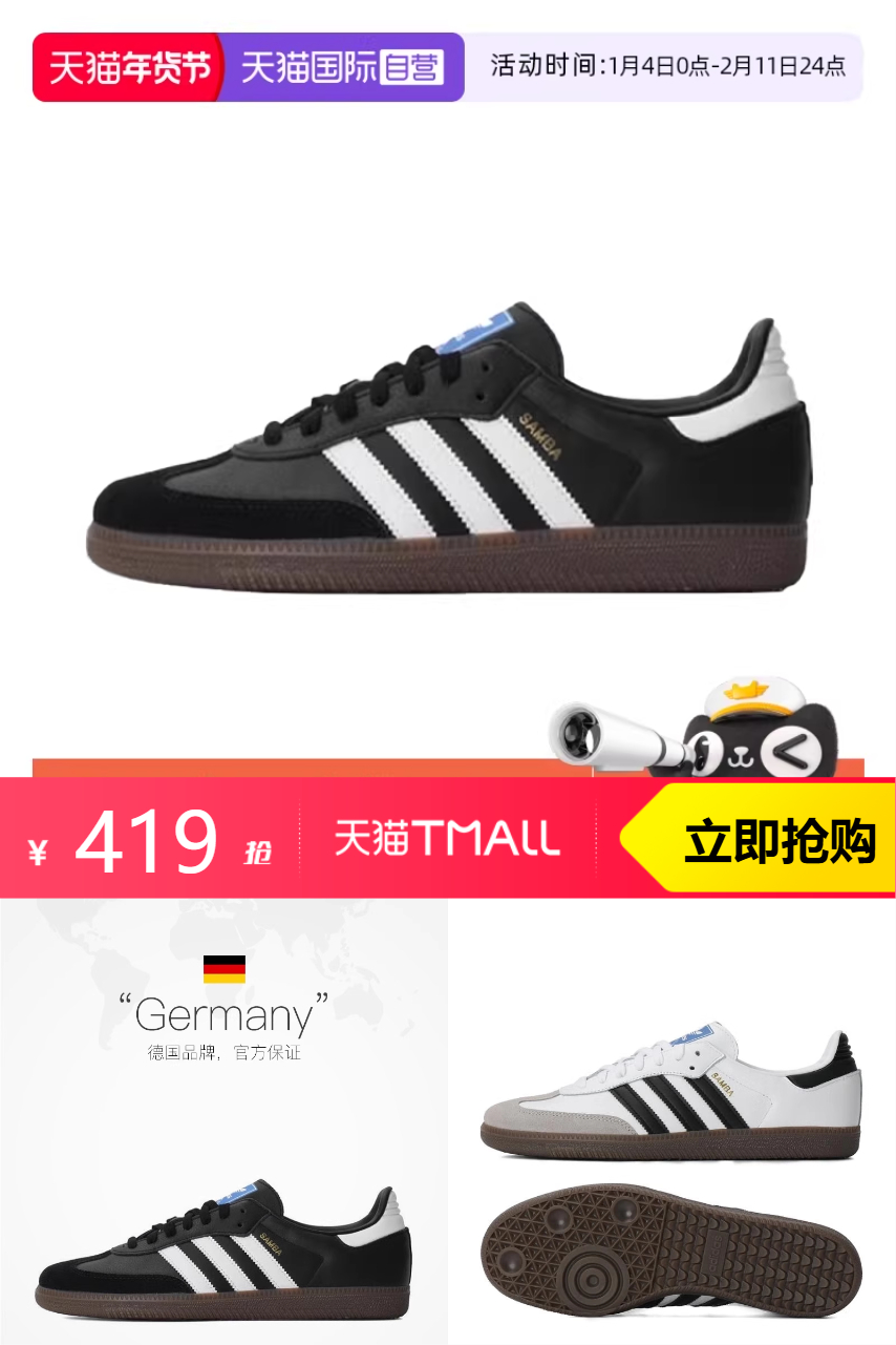 阿迪达斯 阿迪达斯SAMBA OG运动休闲鞋 564元减65 商品纠错