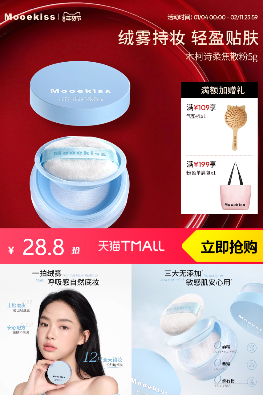 【淘金币抵扣5.36元,88VIP抵扣2.89元,到手价20.55元,相当于1件10.28元】木柯诗柔焦散粉,控油不卡粉,轻松打造无瑕妆容!持久不脱妆,肌肤更细腻!