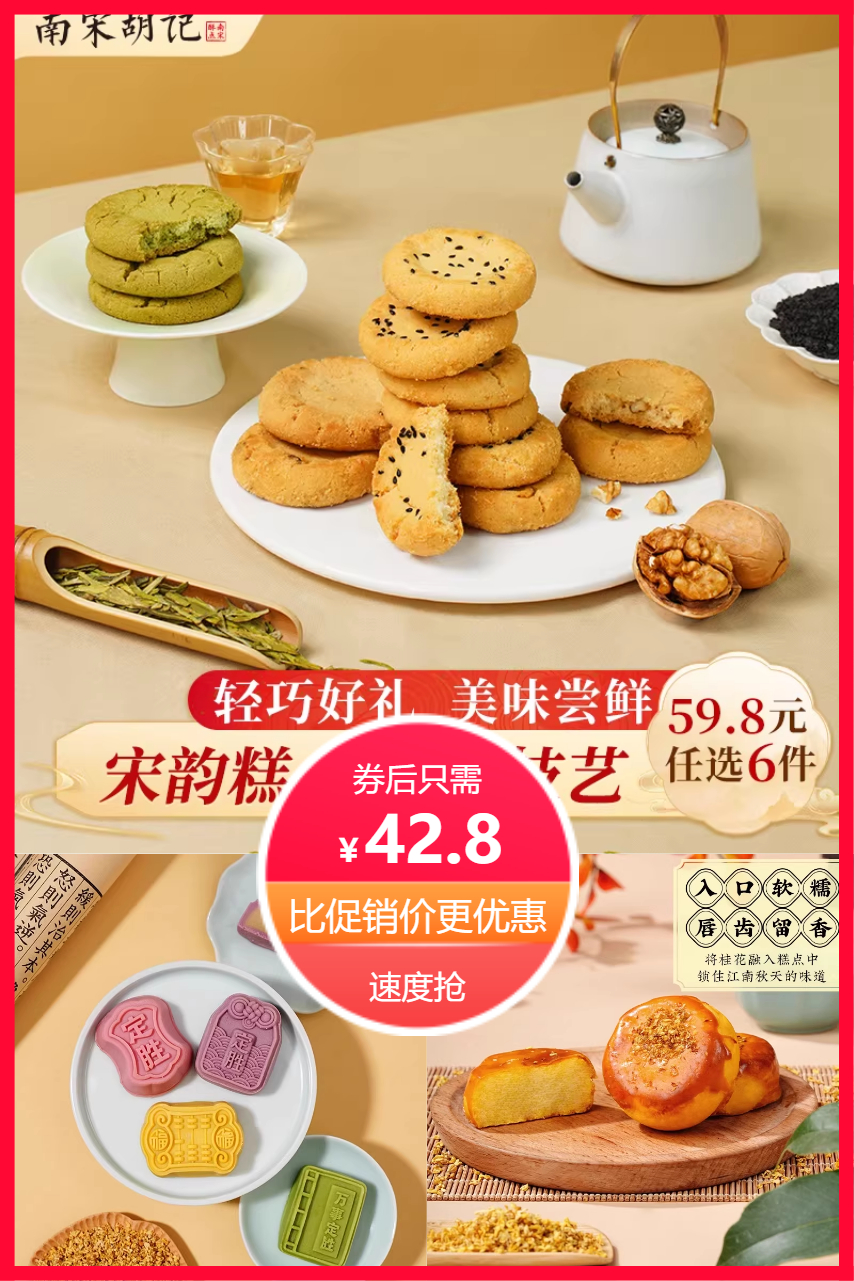 【42.8元任选6件!】南宋胡记桂花绿豆糕,传统中式糕点,清香软糯,杭州特色小吃,口感细腻,适合下午茶或伴手礼,超值囤货首选!